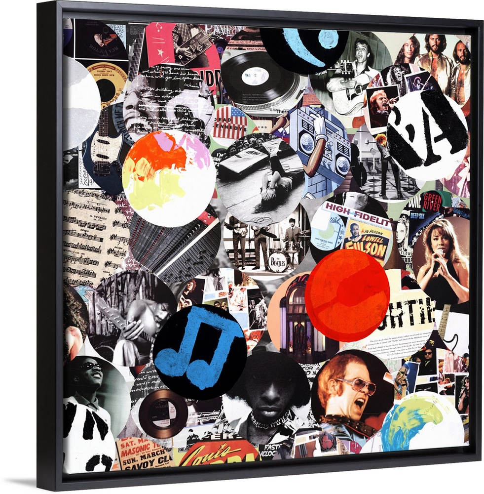 <p>A square collage of circular images of music and musicians.</p>