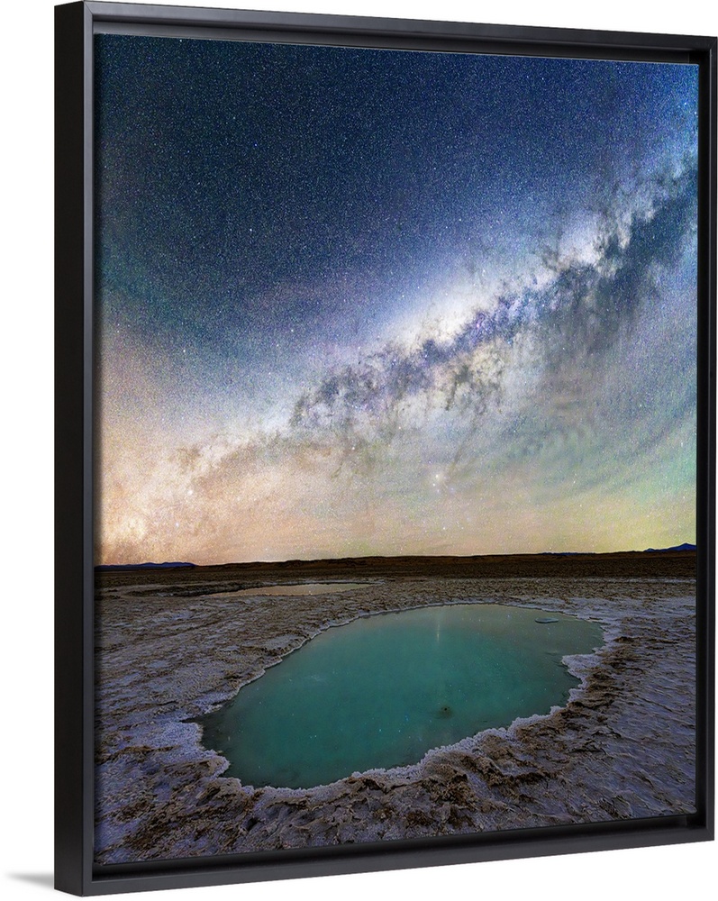 <p>Starry sky and Milky Way over salt pond, Ojos del Mar, Tolar Grande, Salta, Argentina.</p>