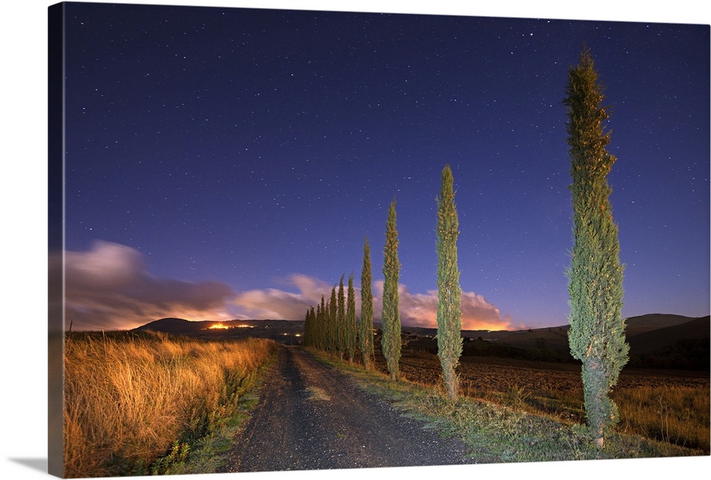 <p>A starry sky over a typical tuscan Cypress Road.</p>