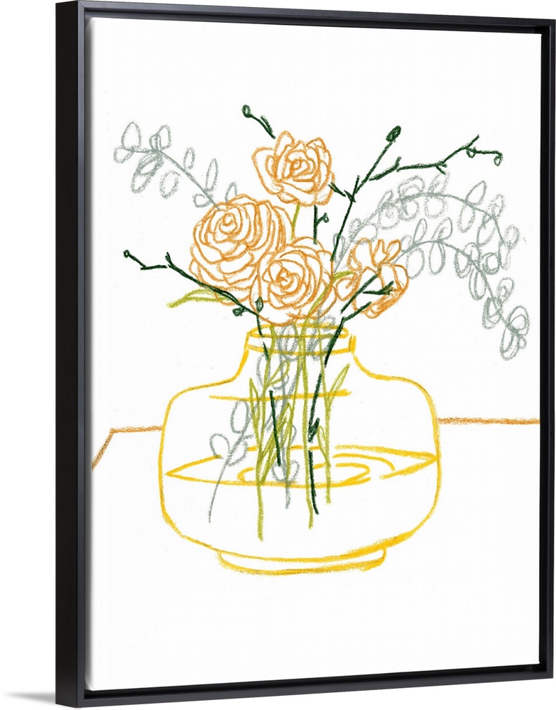 Vases and Urns Art Contemporary and Modern Decorative Art Drawing Florals Rose She Shed Décor Melissa Wang Lemon Yellow