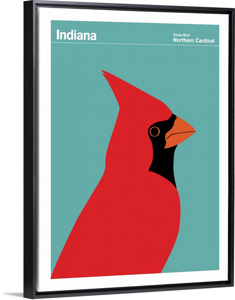 Art Blue Wall Art Print Collection Decorative Art Graphic Art Indiana Travel Posters Minimal Travel Posters Wildlife Bird Cardinal
