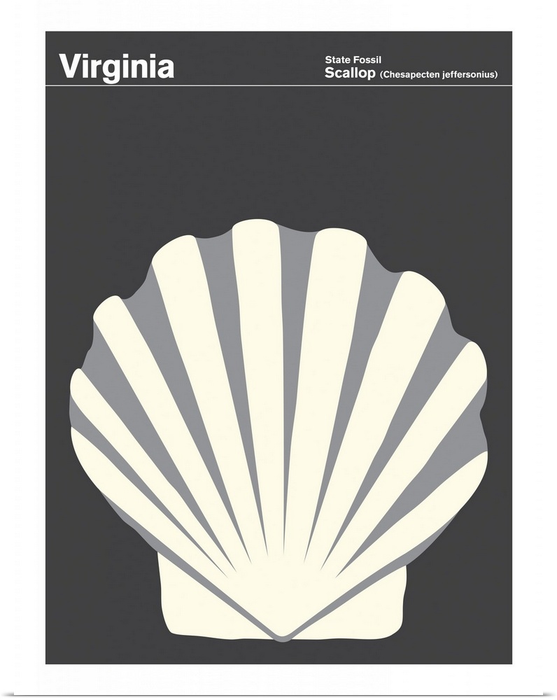 Art Print Collection Decorative Art Fossil Graphic Art Grey Wall Art Virginia Shells Travel Posters Minimal Travel Posters