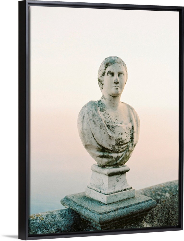<p>A photograph of a simple, classic bust statue on a stone railing, Lake Como, Italy.</p>