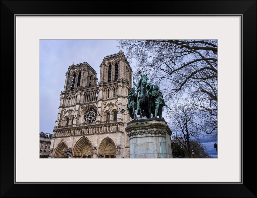 <p>Statue Of Charlemagne In Front Of The Notre Dame Cathedral; Paris, France</p>