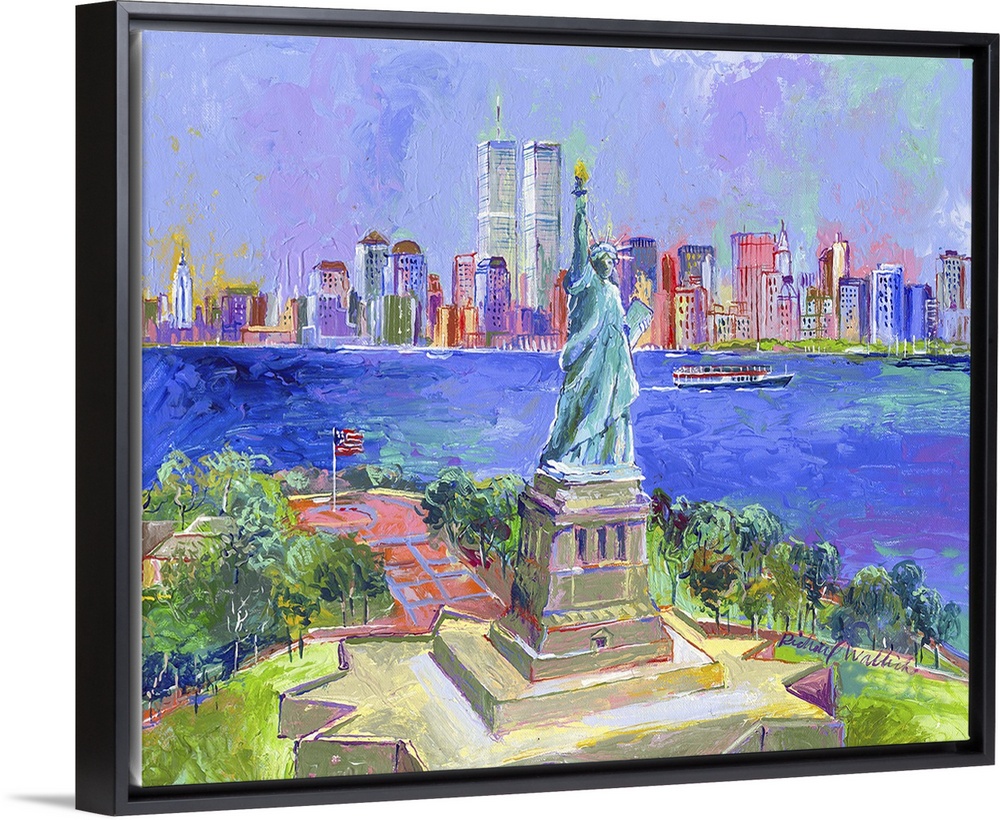 Art Blue Wall Art Cityscapes Executive Office Decor Contemporary Art Painting New York City Statue of Liberty Richard Wallich