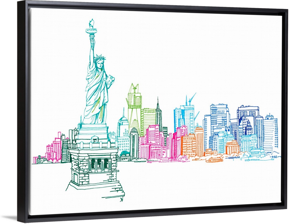 Art Eclectic Cityscapes Contemporary Art Drawing Illustrations Multicolor Wall Art United States New York New York City Statue of Liberty