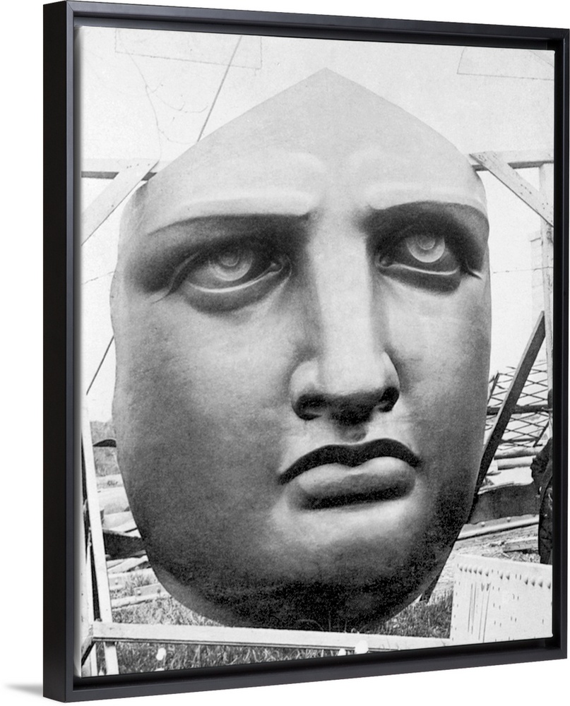 <p>Face of the Statue of Liberty before assemblage at Bedloe's Island, 1885.</p>