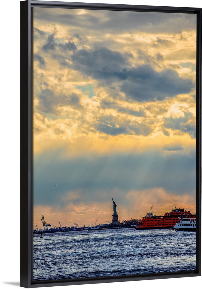 <p>View of the Statue of Liberty with dramatic clouds overhead.</p>