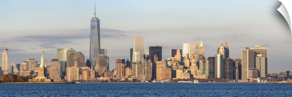 <p>Statue of Liberty, One World Trade Center and Downtown Manhattan across the Hudson River, New York, Manhattan, United States of America.</p>