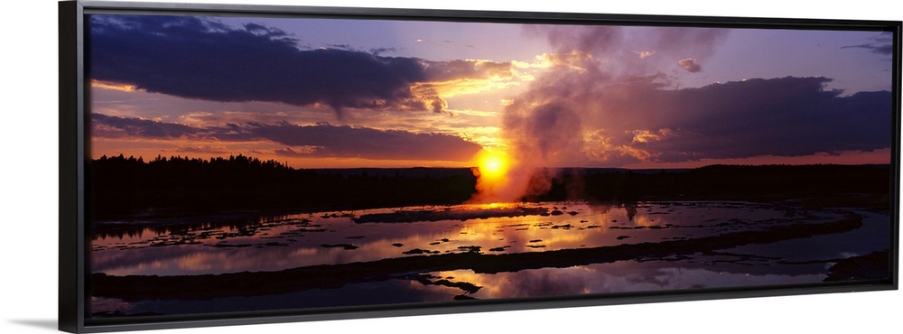 Landscapes Geyser Sunset Photography United States Wyoming Yellowstone National Park