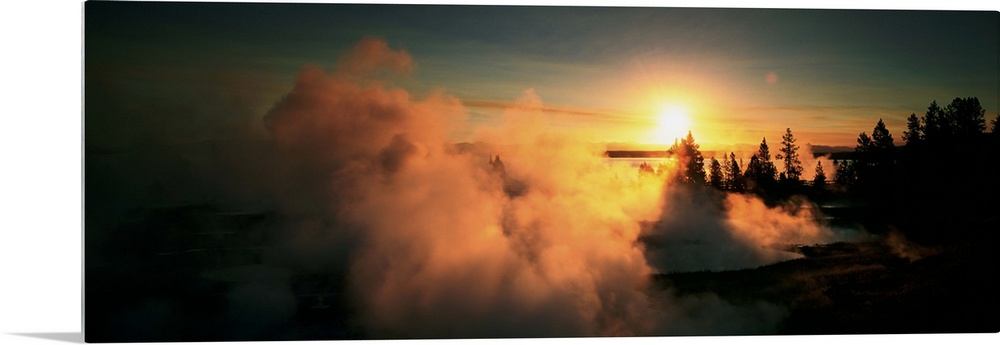 Landscapes Geyser Sunset Photography United States Wyoming Yellowstone National Park