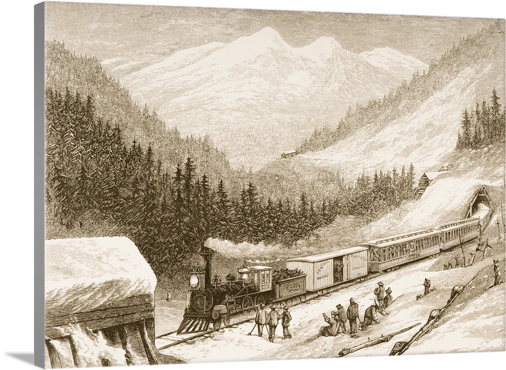 <p>Steam Train Carrying US Mail Across Sierra Nevada In 1870s. From "American Pictures Drawn With Pen And Pencil" By Rev. Samuel Manning, Circa 1880.</p>
