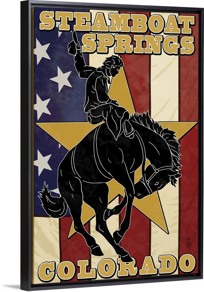 Art American Flag Cowboys Lantern Press Colorado Rodeo Horse