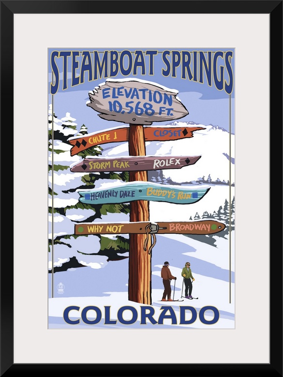 <p>Retro stylized art poster of a sign post showing signs for multiple directions.</p>