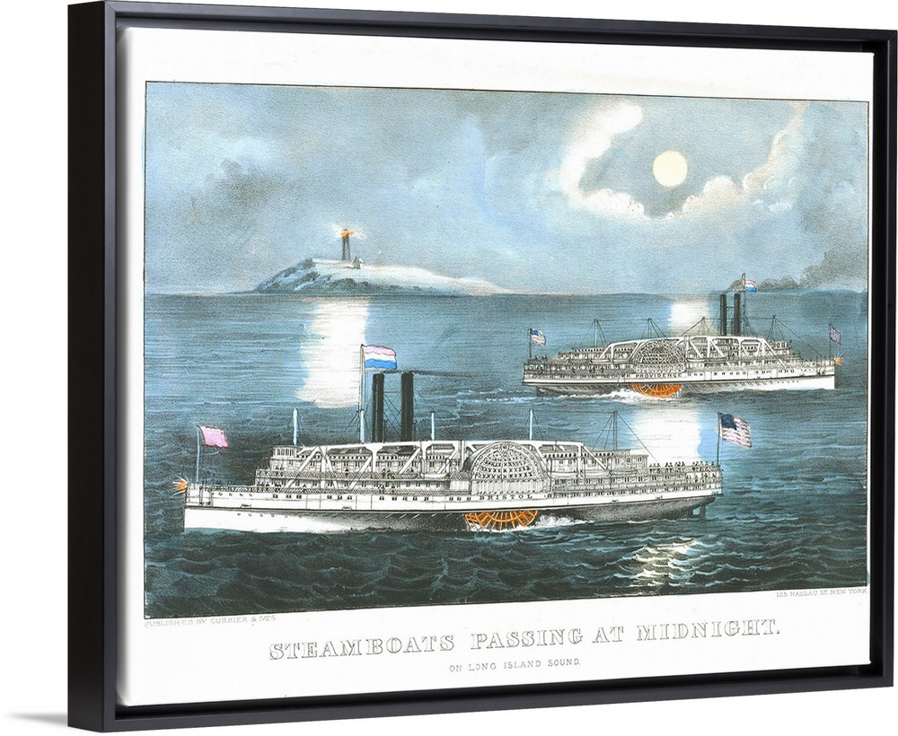 Art Classic Art Modern Art Rivers, Lakes and Oceans Currier and Ives Painting Long Island Transportation Boat Vintage Art
