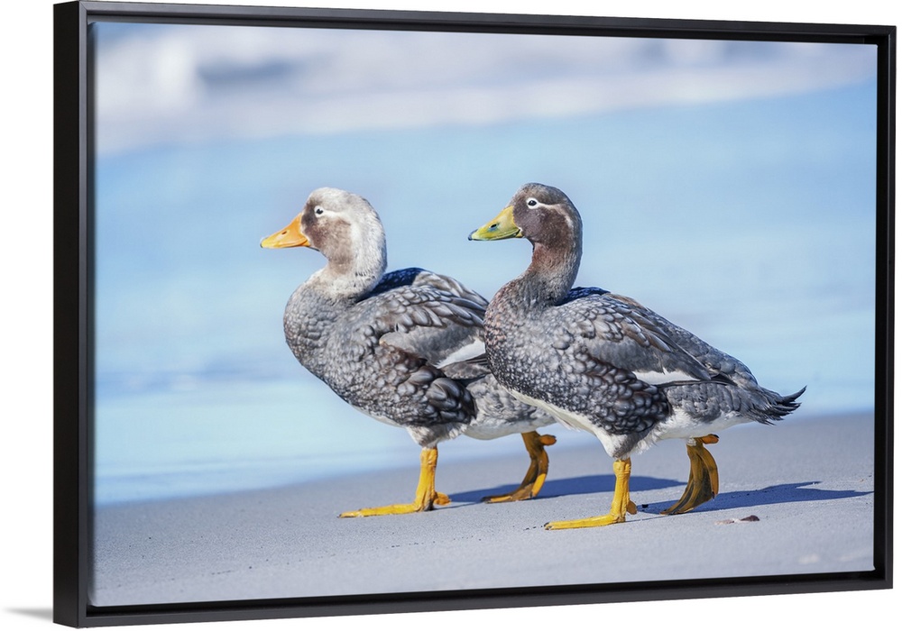 <p>Steamer ducks (Tachyeres brachypterus) walking, Sea Lion Island, Falkland Islands, South America</p>