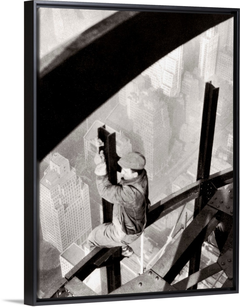 <p>Steelworker atop the Empire State Building, New York City, during its construction. Photograph by Lewis Hine, 1931.</p>