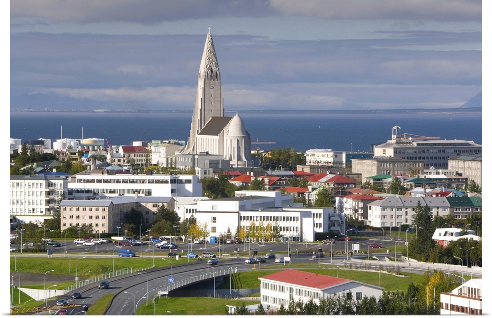 <p>The 75m tall steeple and vast modernist church of Hallgrimskirkja, rising above the city, built between 1940 and 1974, Reykjavik, Iceland, Polar Regions</p>