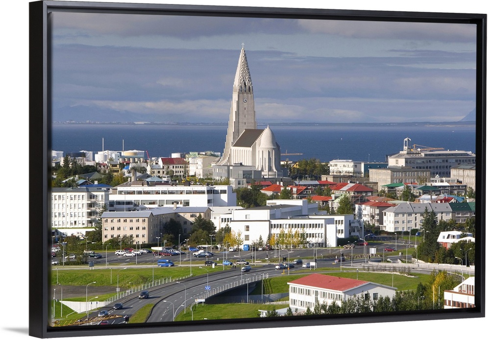 <p>The 75m tall steeple and vast modernist church of Hallgrimskirkja, rising above the city, built between 1940 and 1974, Reykjavik, Iceland, Polar Regions</p>