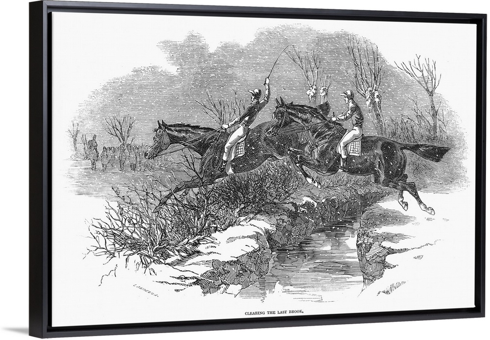 <p>Steeplechase, 1846. Clearing the Last Brook. Wood Engraving, English, 1846.</p>