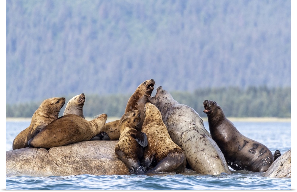 <p>Steller sea lions (Eumetopias jubatus), haul out site, South Marble Islands, Glacier Bay National Park, UNESCO World Heritage Site, Alaska, United States of America, North America</p>