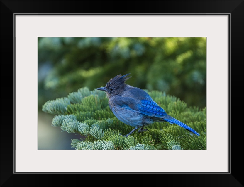 <p>Steller's Jay perched on a Fir Bough at Mammoth Lakes California</p>