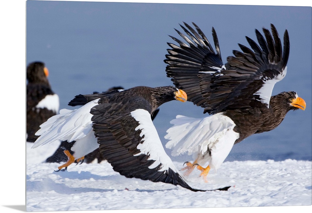 <p>Steller's Sea Eagle (Haliaeetus pelagicus) chasing away another adult, Kamchatka, Russia</p>