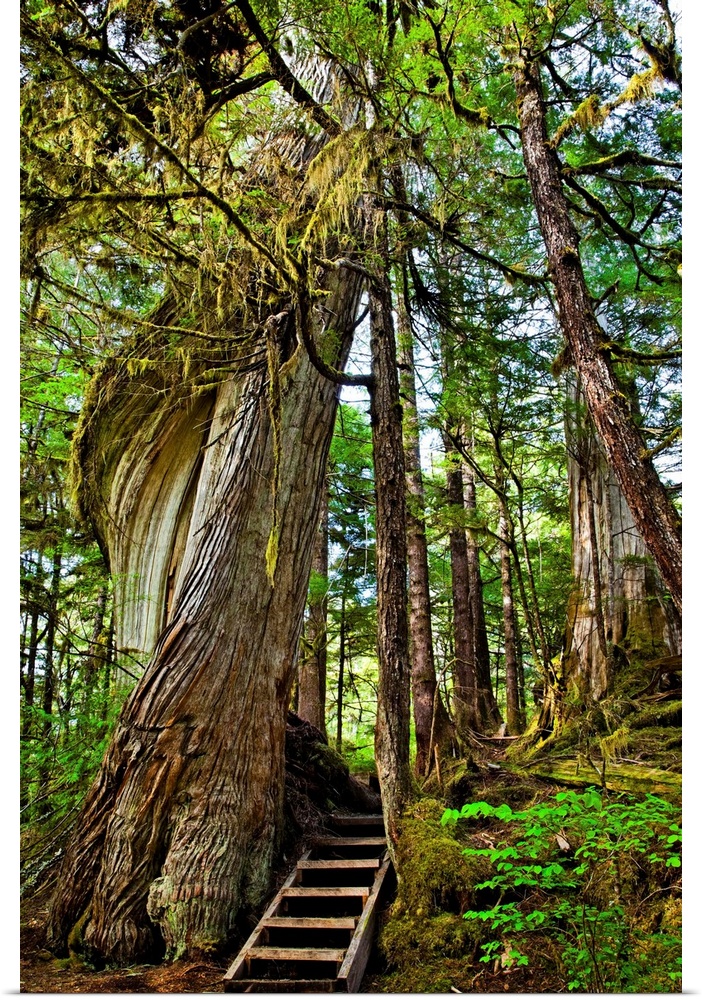 <p>Moss draping twisting tree at Lunch Falls Loop Trail, Settlers Cove State Park, SE Ketchikan, Alaska on a sunny day, early summer.</p>
