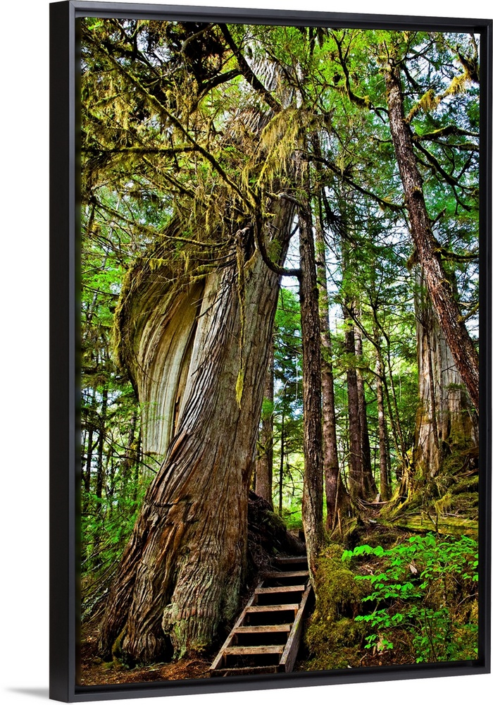 <p>Moss draping twisting tree at Lunch Falls Loop Trail, Settlers Cove State Park, SE Ketchikan, Alaska on a sunny day, early summer.</p>