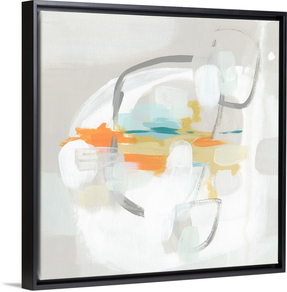 <p>Contemporary abstract artwork in pale beige tones with pops of orange and teal.</p>