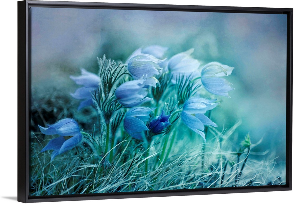 <p>A group of pasque flowers, the first flowers in spring. Colors of this image are mostly blue.</p>