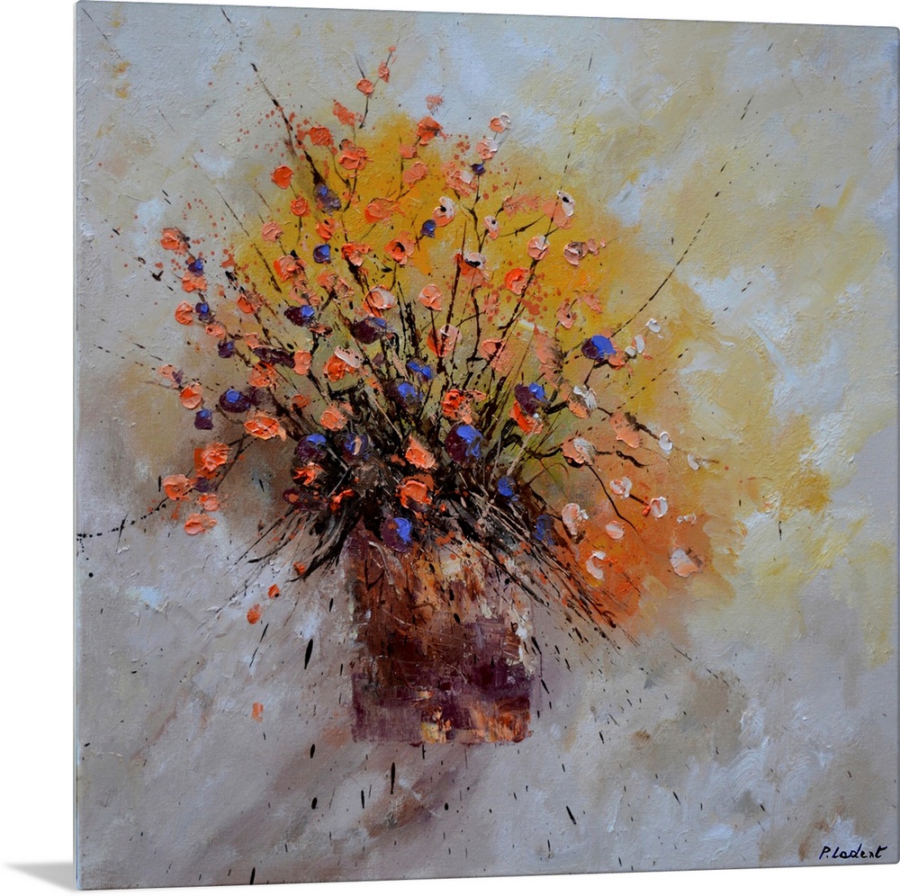 <p>Contemporary still life of an abstracted vase of flowers on a neutral background.</p>