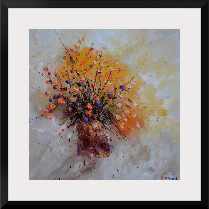 <p>Contemporary still life of an abstracted vase of flowers on a neutral background.</p>