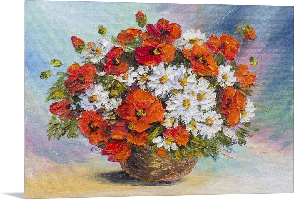 <p>Originally an oil painting of still life. Originally an abstract watercolor bouquet of poppies and daisies.</p>