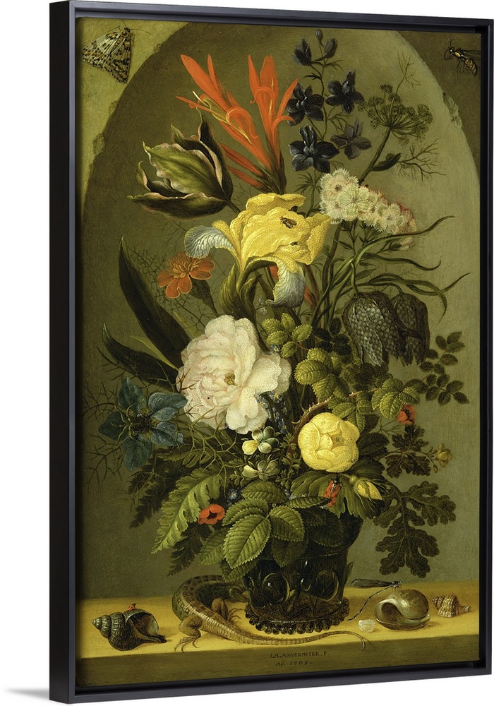 <p>Still life of flowers, c. 1705, oil on panel. By Johann Adalbert Angermeyer (1674-1740).</p>
