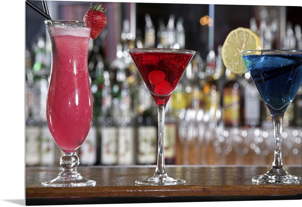 <p>still life of three different cocktails</p>