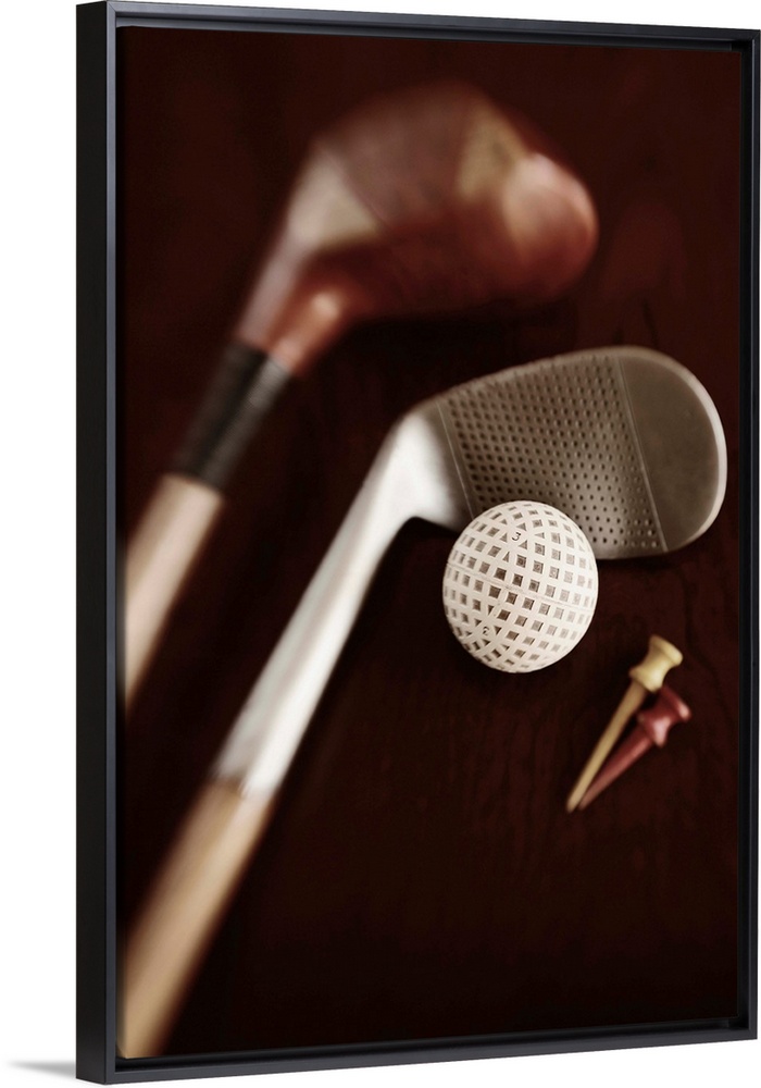 <p>Still life if vintage golf clubs, tees and ball. Selective focus on ball.</p>