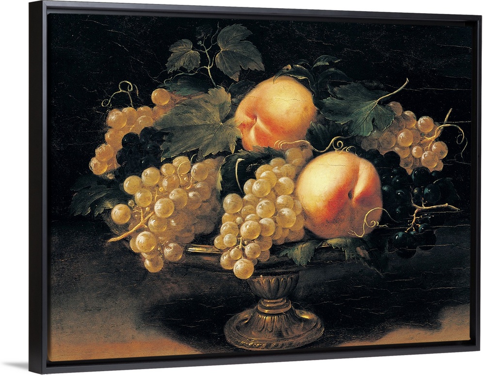 <p>Nuvolone Panfilo, Still Life with Peaches, White Grapes, Black Grapes, Vine Leaves and Metal Cup, 1620, 17th Century, oil on panel, Italy, Lombardy, formerly in Milan, private collection (65286) Everett Collection\Mondadori Portfolio</p>