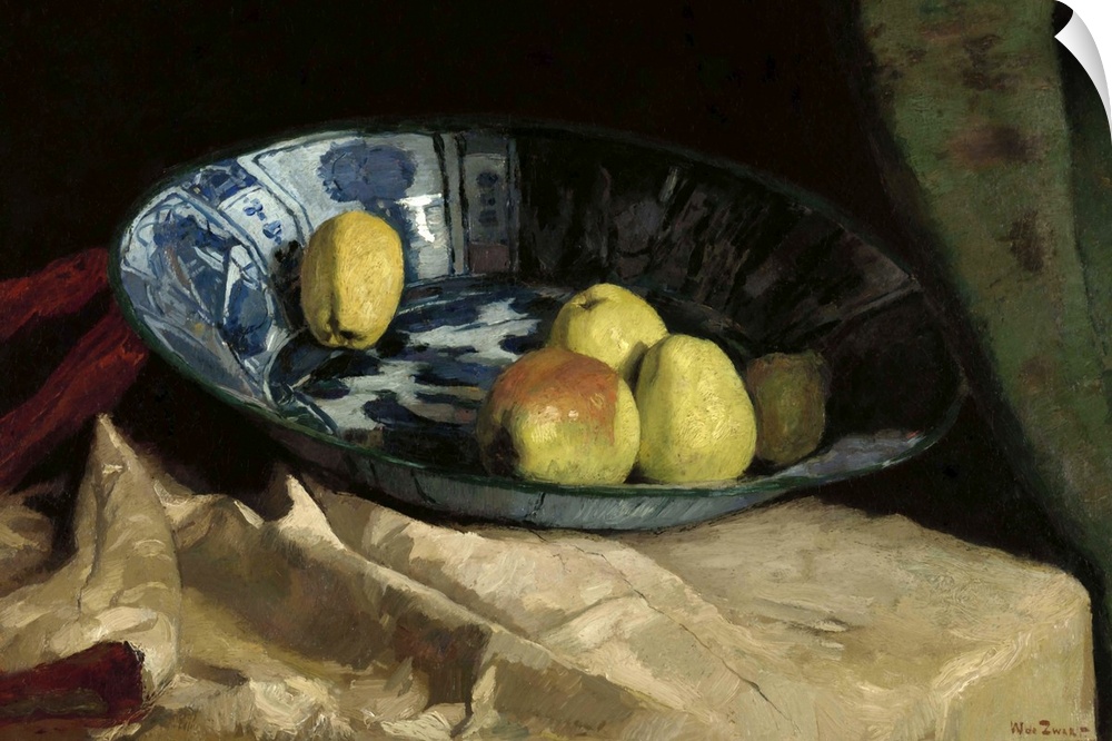 <p>Still Life with Apples in a Delft Blue Bowl, by Willem de Zwart, 1880-90, Dutch painting, oil on canvas.</p>