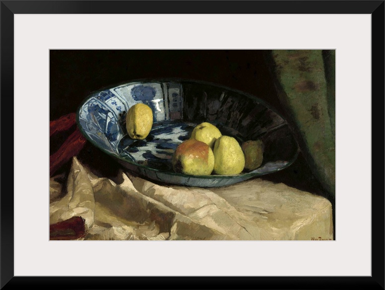 <p>Still Life with Apples in a Delft Blue Bowl, by Willem de Zwart, 1880-90, Dutch painting, oil on canvas.</p>