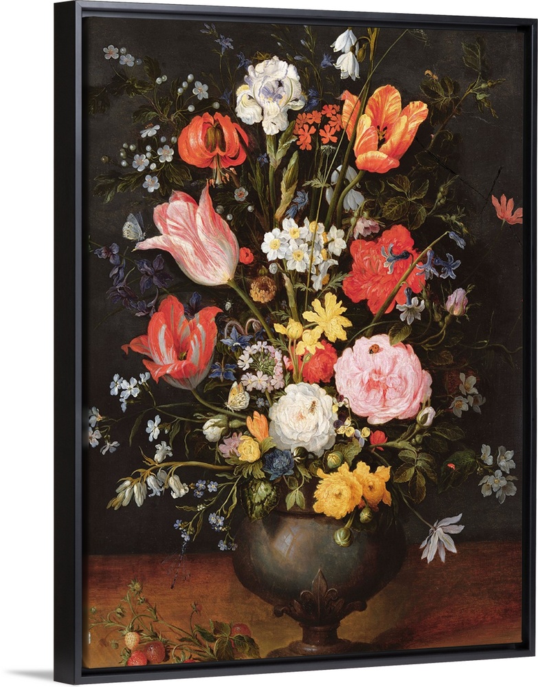<p>Still life with flowers and strawberries, oil on panel. By Jan Bruegel the Younger (1601-78).</p>