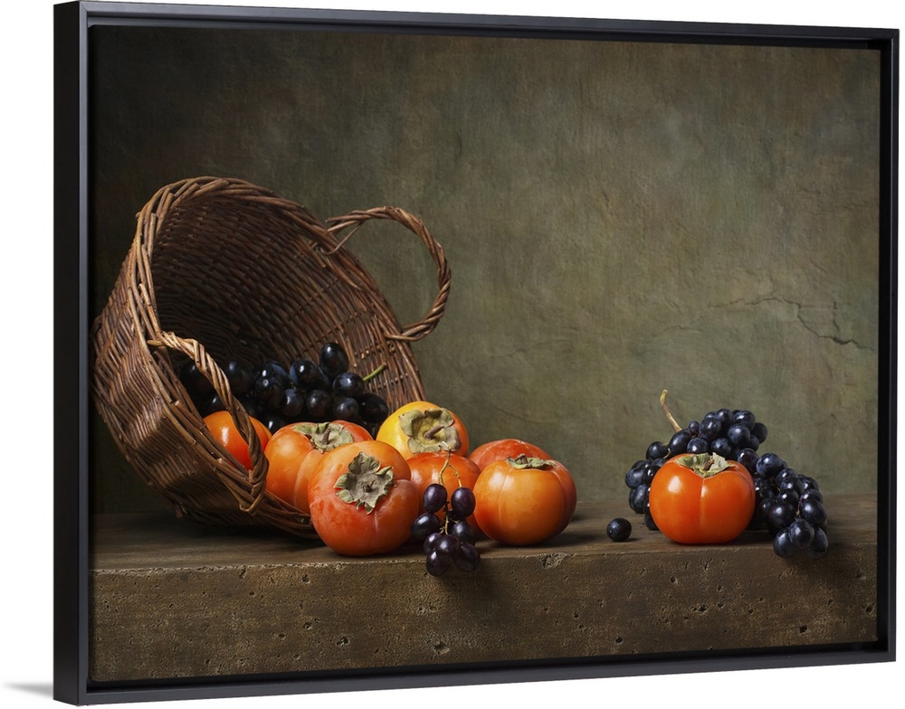 <p>Still life with persimmons and grapes on the table.</p>