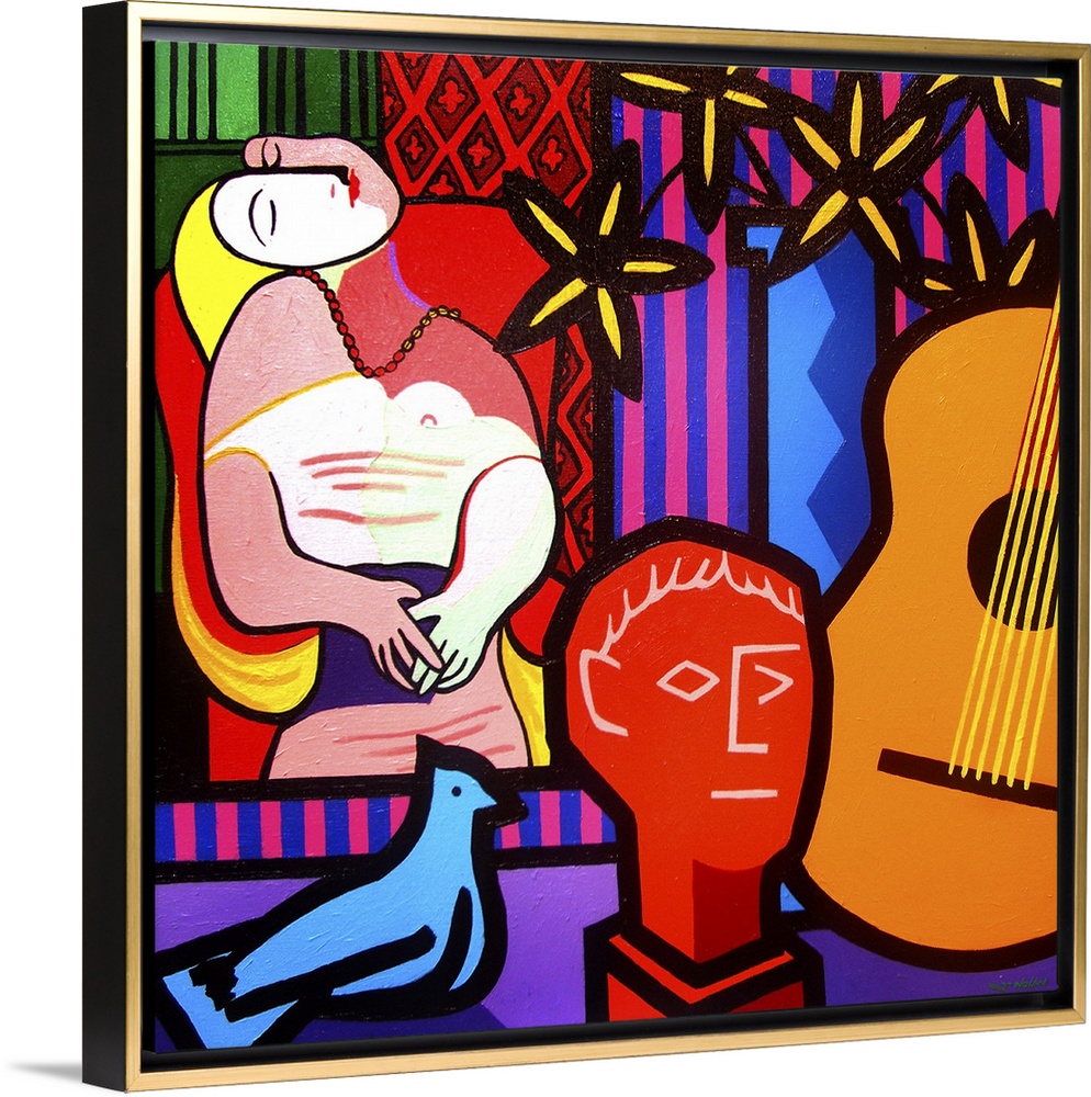 <p>Still Life With Picassos Dream, flowers, woman, bird</p>