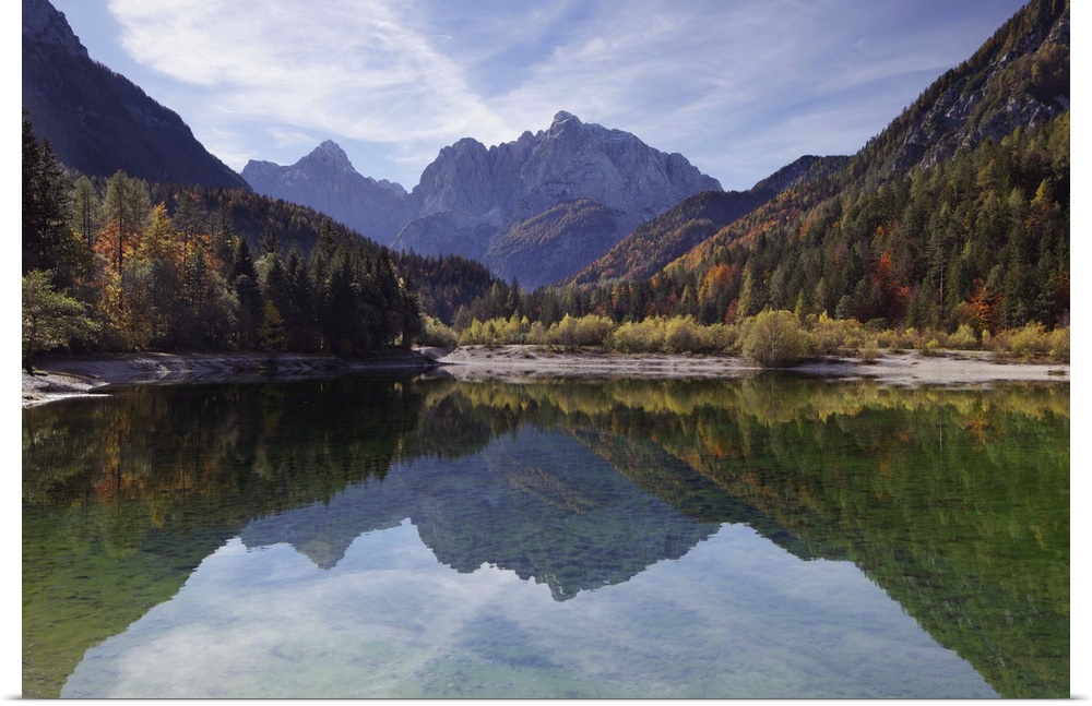 <p>Julian Alps, Peaks of Prisojnik and Razor reflected in pools beside the Velika Pisnca river in autumn.</p>