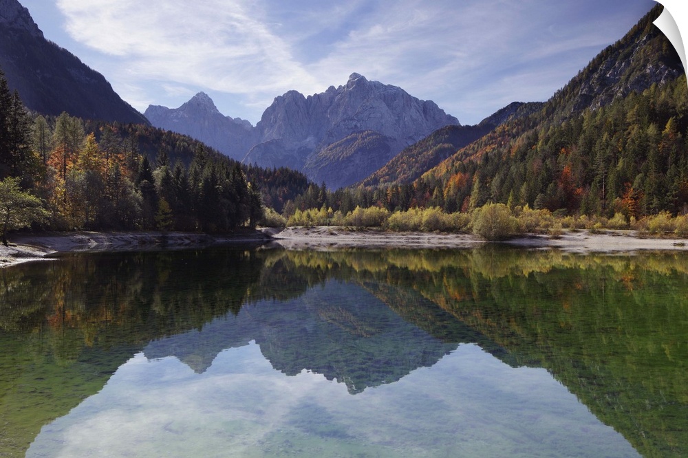 <p>Julian Alps, Peaks of Prisojnik and Razor reflected in pools beside the Velika Pisnca river in autumn.</p>