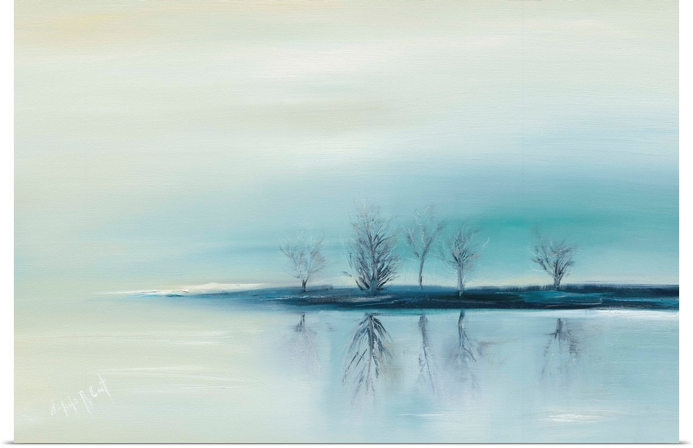 Art Transitional Blue Wall Art Contemporary Art Landscapes Rivers, Lakes, and Oceans Winter Wonderland Winter Michele Gort Seascapes Painting Reflections