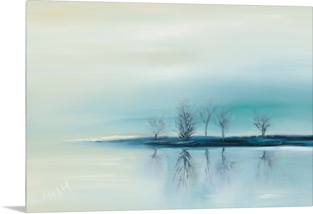 <p>Contemporary painting with Winter trees reflecting on to an icy landscape.</p>