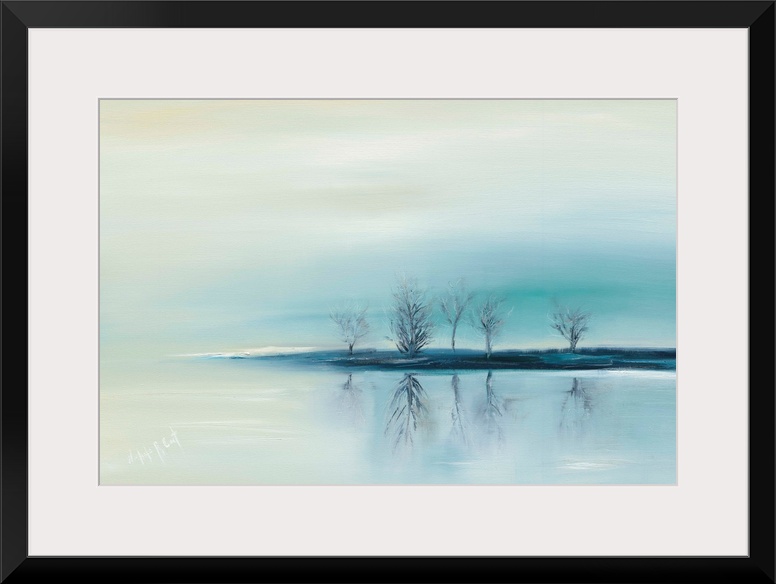 <p>Contemporary painting with Winter trees reflecting on to an icy landscape.</p>