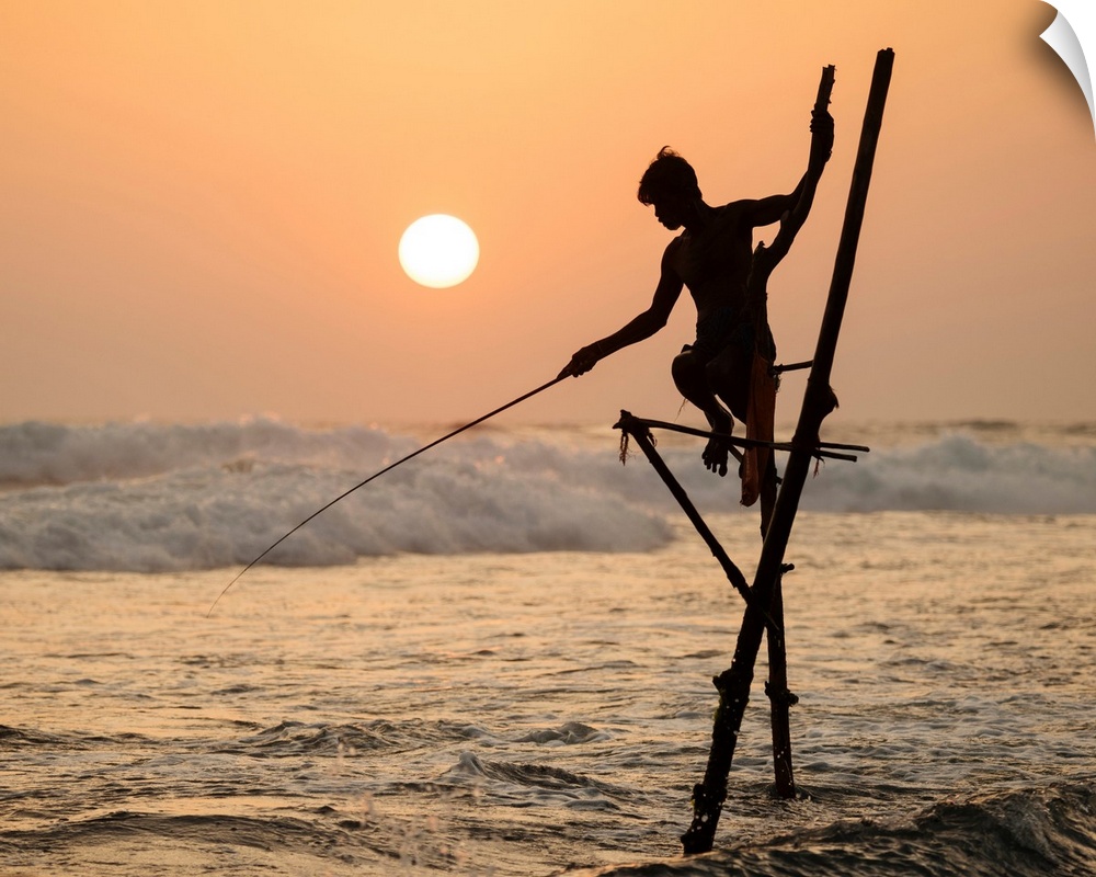 <p>Stilt Fishermen At Dusk, Weligama, South Coast, Sri Lanka, Asia.</p>
