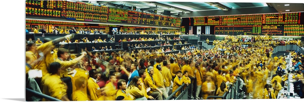 <p>Hundreds of people at the stock exchange in Chicago are photographed inside during trade time.</p>